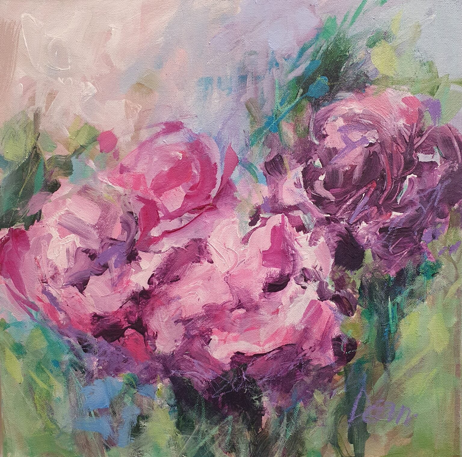 With strong colours and contrasts, this painting encompasses the heat of the height of summer. Expressive. lively brushstrokes give a feeling of movement and change that creates a dramatic narrative.